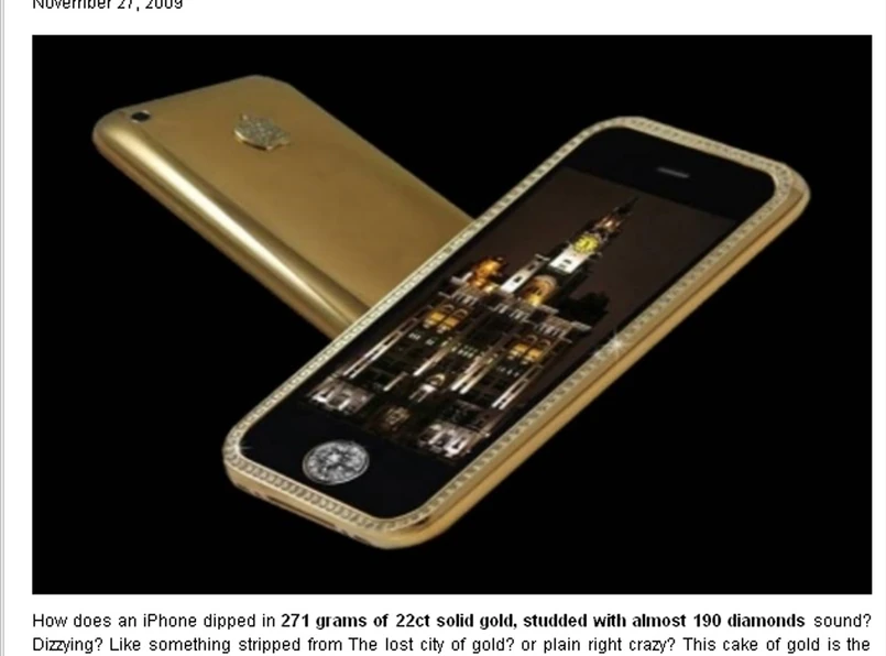 Stuart Hughes z Liverpool spędził ostatnie 10 miesięcy projektując to cacko. Tworząc obudowę zużył 271 gram 22-karatowego złota. Wierzch telefonów ozdobił 136 diamentami. Logo Apple'a to kolejne 53 diamenty, z kolei przycisk nawigacyjny to rzadki, siedmiokaratowy diament - podaje portal "Mobile Phone Review"