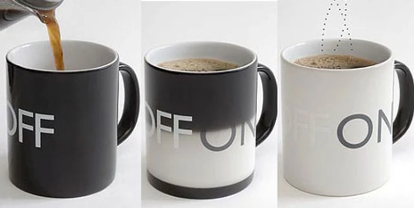 Dobre pomysły bywają ukryte w prostej formie. Taki jest właśnie kubek On/Off. Porcelana z wbudowanym mechanizmem reagującym na zmianę temperatury wewnątrz uratować może niejeden poranek w biurze. Nic tak nie przeszkadza jak poparzony język czy piekące cały dzień podniebienie. W zależności, czy płyn w kubku jest gorący czy zimny, pojawia się na nim On lub Off.