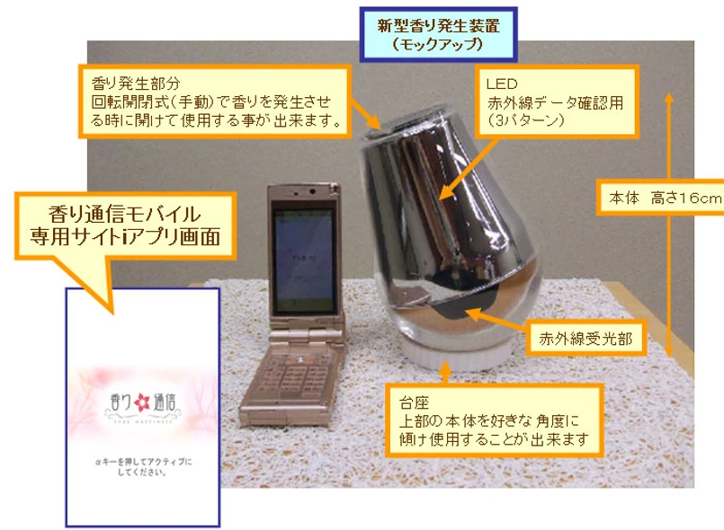 Japoński operator gsm, NTT DoCoMo, w połowie kwietnia będzie przeprowadzał komercyjne testy generatora zapachów dla telefonów komórkowych. Urządzenie z kilkoma podstawowymi zapachami może produkować różne pachnące mikstury. Wszystko według naszego upodobania i ułożonej 'zapachowej playlisty'. Tę wysyła się z komórki do urządzenia lub do znajomych, a ci do swojego mieszadełka. Przesłanie zapachu jeszcze nigdy nie było tak proste. Hm...