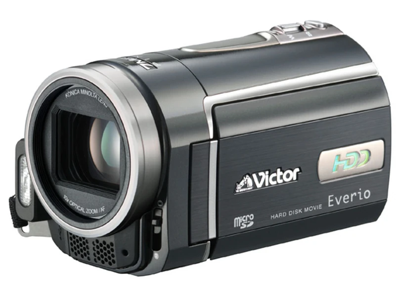 JVC VICTOR Everio jest pierwszą kamerą z twardym dyskiem o wielkości 1.3 cala. W stosunku do poprzednich modeli wielkość dysku twardego zmniejszono o 11 procent. Zmalała także i sama kamera - o jedną piątą. Waży 380 gramów (z baterią). Kamera dostępna będzie w dwóch modelach - z sensorem CCD 7.38 lub 5.37 megapikseli. Pojemność dysku wynosić będzie odpowiednio 40 lub 30 giga. Na rynku pod koniec lutego, cena jeszcze nie ustalona.