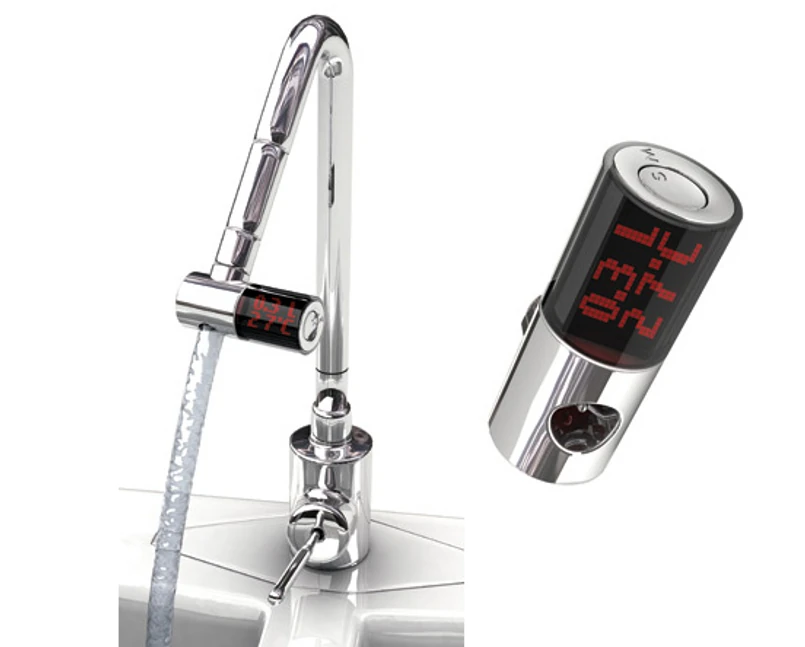 Zamiast chlapać na lewo i prawo, ręce moczymy, mydlimy i spłukujemy. Elektroniczny licznik na kran jest bezlitosny i praktyczny. Powie, ile marnujemy, powie, czy lejemy ciepłą, czy zimną. "Faucet Buddy" pomysłu Baeka Uyeola jest dopiero w fazie projektu, niestety jeszcze niedostępny w sprzedaży.