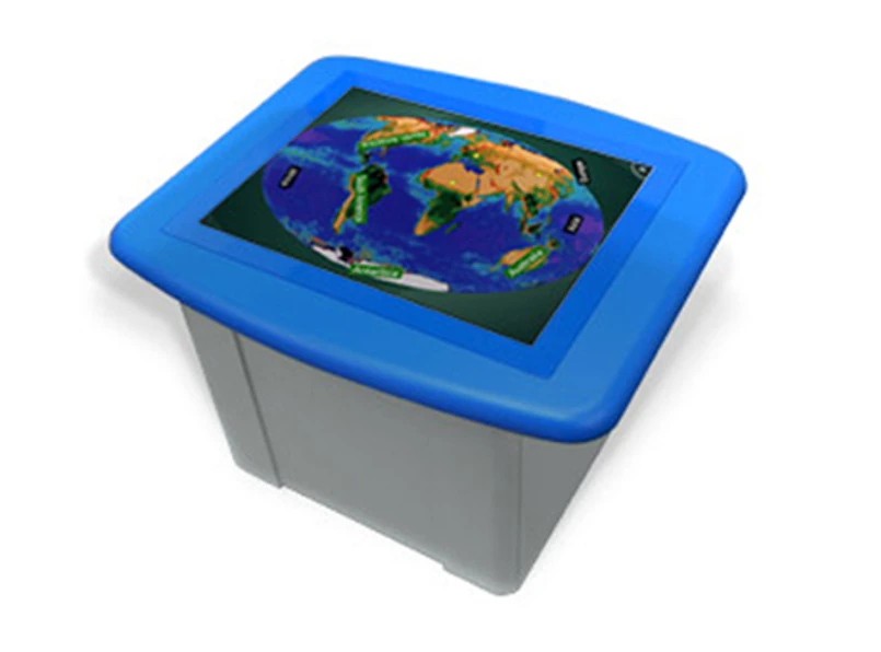 SMART Table, czyli Mądry Stół, został zaprojektowany przez firmę Smart Tech specjalnie z myślą o najmłodszych. Jest odpowiednio niski, kolorowy, a jego kanty są okrągłe i bezpieczne. Umieszczony w blacie dotykowy wyświetlacz ma przekątną 27 cali i jest odporny na porysowania, zachlapania i można go bez problemu myć (np. po spotkaniach trzeciego stopnia z czekoladą, dżemem, farbkami lub błotkiem).