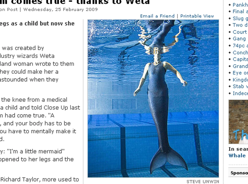 Kobieta poprosiła tamtejszych speców, by stworzyli dla niej syreni ogon umożliwiający zwinne pływanie i wyglądający tak, jakby faktycznie wyrósł z jej ciała.