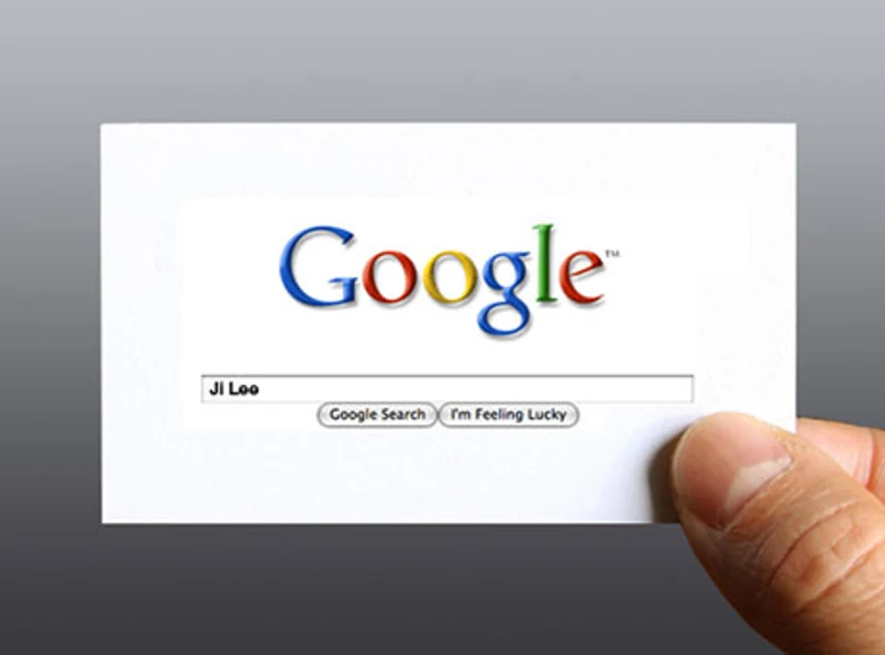 Ta praktyka nie jest chyba obca Ji Lee, autorowi google'owskiej wizytówki. Zamiast tradycyjnego kartonika Ji Lee proponuje, by arkusik upodobnić do okienka wyszukiwarki Google z wpisanym imieniem i nazwiskiem właściciela. W ten sposób zamiast rozpisywać się o tym, kim jesteśmy, gdzie pracujemy i mieszkamy, bez zbędnych wyjaśnień doradzimy odbiorcy wizytówki, by po prostu nas zgoogle'ował.