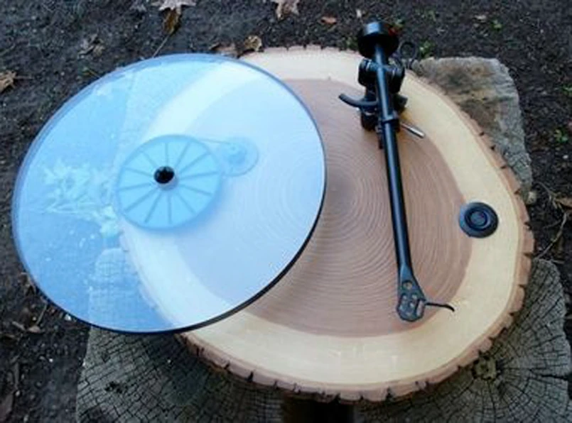 Na pomysł stworzenia drewnianego gramofonu wpadli designerzy z kalifornijskiego studia FiveTen, założonego przez medioznawcę Joela Cilleya. Jako podstawę gramofonu wykorzystano drewno chyba w najczystszej jego postaci. Podstawą urządzenia jest bowiem plaster nieokorowanego pnia.