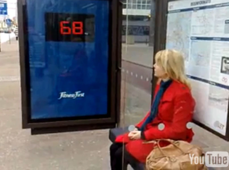 Takie oto sadystyczne przystanki z wbudowanymi w ławeczki wagami ustawiono w holenderskim Rotterdamie, w ramach kampanii reklamowej sieci klubów Fitness First. I nici z dobrego poranka...
