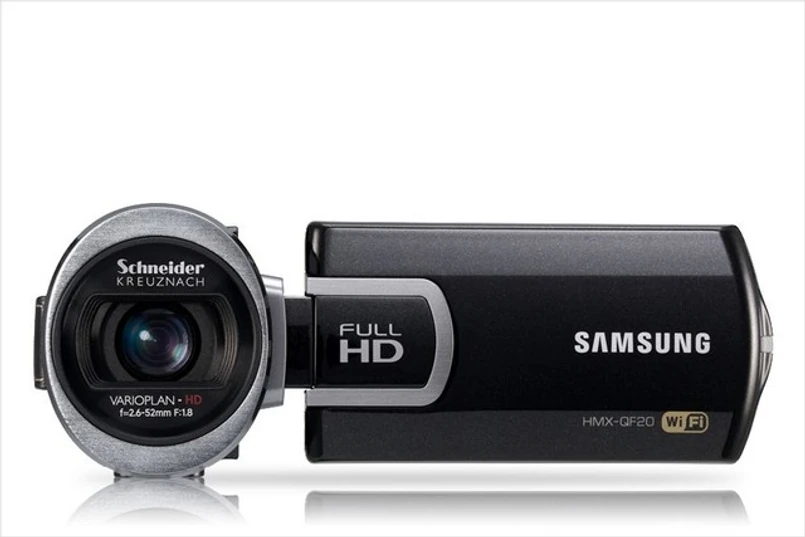 Kamera Samsung HMX-QF20 nagrywa wideo w rozdzielczość Full HD (1920x1080) i umożliwia przesyłanie obrazu bezprzewodowo za pośrednictwem W-Fi do telewizora, komputera lub smartfonu. Jeśli dodamy do tego matrycę BSI CMOS 5 megapikseli, możliwość przekładania kamery w czasie filmowania z lewej do prawej dłoni, inteligentny tryb Smart Auto oraz dwudziestokrotny zoom optyczny – ta kompilacja funkcji w jednym urządzeniu robi wrażenie.