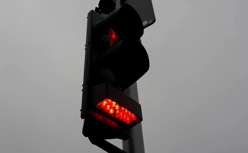 Czerwony pasek, który wyświetlany jest na chodniku, informuje o tym, że nie wolno w tym momencie wejść na jezdnię.