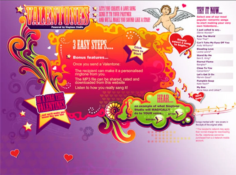 Tego rodzaju nietypową usługę oferuje brytyjski serwis Valentone. Pierwszy etap tworzenia muzycznej walentynki przypomina zabawę w karaoke – zadaniem nadawcy jest bowiem wyśpiewanie do słyszanej muzyki wybranej piosenki i jej nagranie. Przesłany plik zostanie następnie poddany cyfrowej obróbce (zostanie dołożony podkład melodyczny, chórki i inne bajery), która zatuszuje nasze wokalne niedociągnięcia.