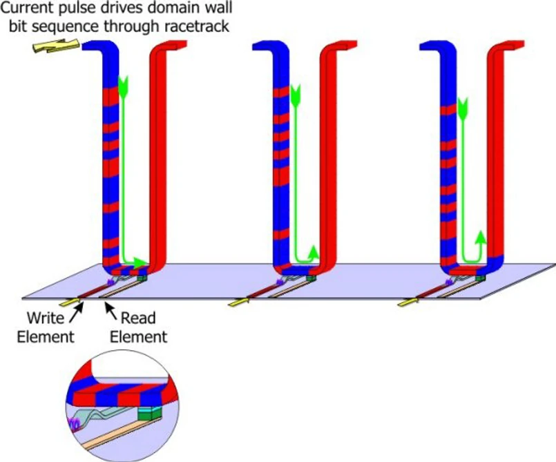 Konstruktorzy uchylili rąbka tajemnic, jakie kryją się za nazwą racetrack. W dużym uproszczeniu, do przechowywania danych nowa technologia wykorzystuje zjawiska fizyczne związane z obrotem elektronów wokół własnej osi.