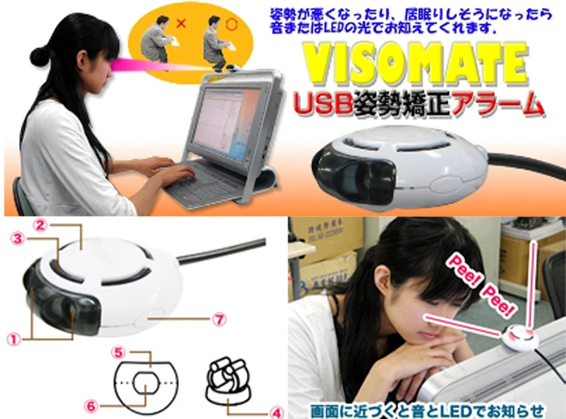 Gadżet, zasilany przez port USB, ma wbudowany czujnik, który kontroluje, jak blisko trzymamy głowę przy monitorze. Japońscy inżynierowie twierdzą, że to wystarczy, by wykryć, że zmieniliśmy postawę z prawidłowej na wygodną. Gdy urządzenie uzna, że źle siedzimy, od razu zaczyna głośno piszczeć.
