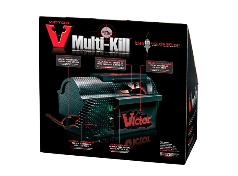 Wystarczy włożyć odpowiednią przynętę i nacisnąć przycisk, a pułapka jest gotowa. Mysz wchodzi przez specjalną klapkę do pudełka. Gdy urządzenie wykryje, że gryzoń już jest w środku, uruchamia obwody i razi go zabójczym prądem. Potem komora sie obraca, by mysz wpadła do przechowalni na trupy. A wszystko tak szybko i skutecznie, że, jak obiecują producenci urządzenia o nazwie "Victor Multi-Kill", żadna mysz nie ucieknie.