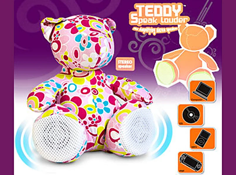 Teddy Speaker to, jak wskazuje nazwa, pluszowy miś, w którego stopach umieszczono dwa głośniczki. Miś jest słodki, uszyty z materiału w kwiecisty, nieco psychodeliczny deseń. Zabawka jest zasilana czterema bateryjkami AAA i można do niej podłączyć praktycznie każdy odtwarzacz mp3. Cena: 23 dolary.