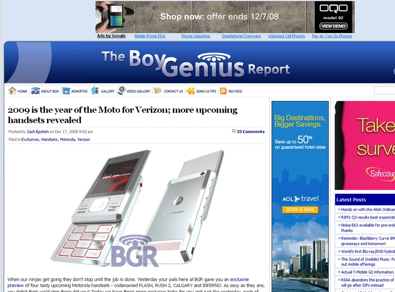 Zdjęcia nowych „motek" zdobyli autorzy bloga informacyjnego BoyGeniusReports.com. Jeśli wierzyć ich wieściom, Motorola chce wkrótce wypuścić na rynek cztery nowe modele o kryptonimach Calgary, Rush 2, Flash oraz Inferno. W pierwszej kolejności, telefony mają być dostępne w ofercie amerykańskiej sieci komórkowej Verizon. Rynkowy debiut modeli ma nastąpić jeszcze w pierwszym kwartale 2009 r.