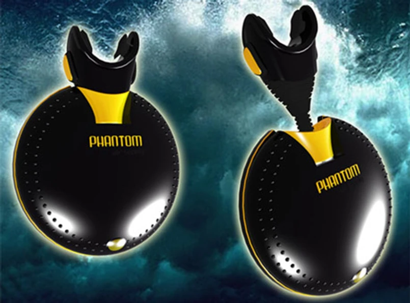 Phantom, bo tak nazywa się wynalazek, to ni mniej, ni więcej jak ergonomiczna butla ze skompresowanym powietrzem. Dzięki opływowym kształtom gadżet idealnie przylega (a raczej przylegałby, bo jak na razie Phantom istnieje jedynie na ekranie komputera) do ciała nurka, nie stanowi zbyt wielkiego obciążenia i nie utrudnia poruszania się pod wodą.