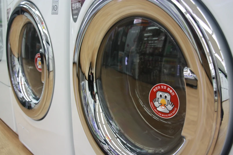 1 Ten trzy pierwsze modele z prawej mogą nie przyjąć się w Polsce. Mamy mniejsze łazienki niż Koreańczycy. Na zdjęciu gigantyczne pralki obok standardowych
