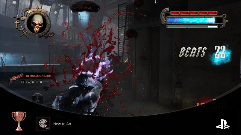 Natomiast największą rolę odgrywa w tej grze muzyka. Im więcej wrogów zabijamy bez przerwy, tym bardziej rośnie nasz wskaźnik "uderzeń na minutę", to zaś sprawia, że muzyka staje się coraz głośniejsza i coraz bardziej intensywna. Od razu więc wprowadza nas w dobry nastrój podczas walk z bossami czy z dużymi grupami przeciwników. Akordy jednak cichną, gdy chwilowo mamy przerwę, bo zabiliśmy wszystko co się rusza. Zresztą sama ścieżka dźwiękowa jest energetyczna, fajna, pobudza do akcji i aż chce się zabijać przeciwników, żeby znowu soundbar grał na pełnej mocy.