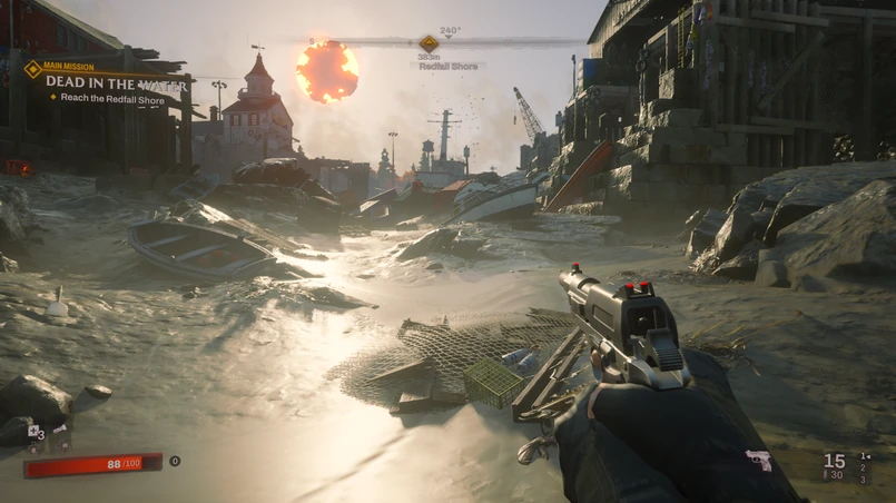 Za to rewelacyjna jest ścieżka dźwiękowa - korzystałem z testowego soundbara Samsunga Q990B z systemem głośników 11.14 i gra brzmiała rewelacyjnie. Sferze audio nie można niczego zarzucić - pozycjonowanie jest świetne, słychać skąd nadciąga wróg, a przekradanie się nocą przez puste miasteczko budzi grozę. Tu Arkane odrobiło pracę domową i pokazało, jak można zrobić naprawdę świetny dźwięk w strzelance.