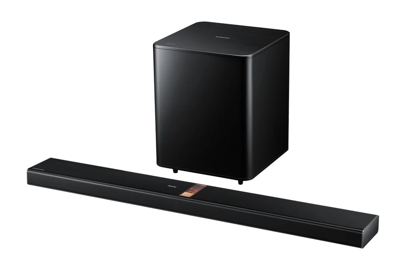 Design HW-750 nie jest czymś powalającym - ot długa, czarna (lub srebrna, w zależności od modelu) belka z lampami widocznymi w środku głośników. Do tego duży, 10" subwoofer, łączący się bezprzewodowo z głośnikiem. Całość podpinamy do telewizora kablem HDMI - a jeśli mamy ekran Samsunga z systemem SoundLink, soundbar połączy się z nim bezprzewodowo. Do zestawu najlepiej podłączyć poprzez Bluetooth smartfon albo tablet i ściągnąć specjalną aplikację, zamieniającą gadżet w pilota.