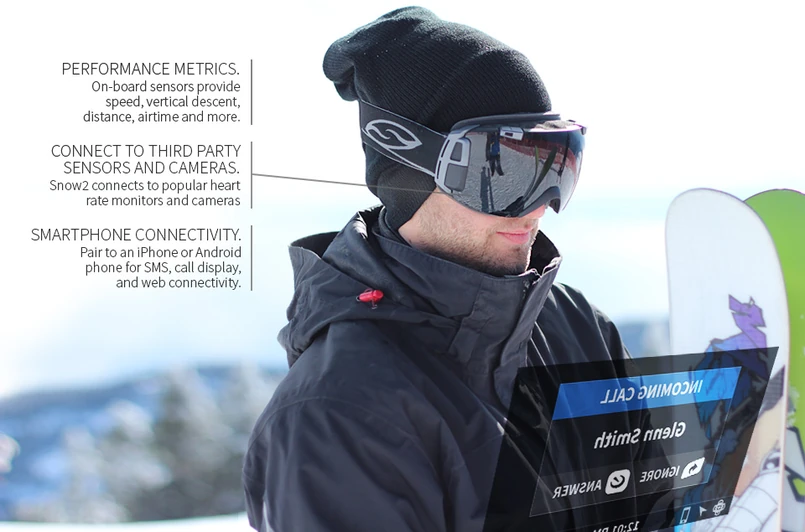 Bluetooth, WiFi, GPS, do tego miniaturowy wyświetlacz, a całość sterowana dwurdzeniowym procesorem - oto podstawowe elementy gogli Snow2. Twócy zapewniają, że system jest całkowicie bezpieczny - ich zdaniem wyświetlany obraz "oszukuje" mózg i daje wrażenie oglądania ekranu o przekątnej 14 cali z odległości 150 centymetrów. Do tego wyświetlane obrazy nie przesłaniają całkowicie trasy, narciarz nie zostanie więc zaskoczony drzewem, które nagle pojawi się w jego polu widzenia.