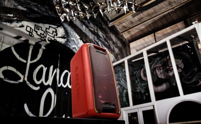 Sony GTK-XB5 to zestaw dwóch głośników zamkniętych w dużej obudowie z krawędziowym podświetleniem LED RGB i stroboskopem. Głośnik - dostępny w kilku wersjach kolorystycznych - może działać zarówno stojąc, jak i poziomo - wszystko zależy od miejsca, jakim dysponujemy. Na górze urządzenia (jeśli postawimy go pionowo) znajdziemy przyciski sterowania głośnością, włącznik, przycisk dodający mocniejszy bas, jak też przycisk służący do sparowania urządzenia z urządzeniem bluetooth. Z tyłu znajdziemy za to dwa gniazda RCA służące do podłączenia XB5 kablem do wzmacniacza, komputera czy telewizora oraz gniazda do podłączenia kolejnych głośników tego typu. Tak, kolejnych głośników, bo Sony umożliwiło stworzenie zestawu kilku, czy nawet kilkunastu takich urządzeń. Słuchałem takiej "ściany" zbudowanej z XB5 na targach IFA i to naprawdę grało głośno.