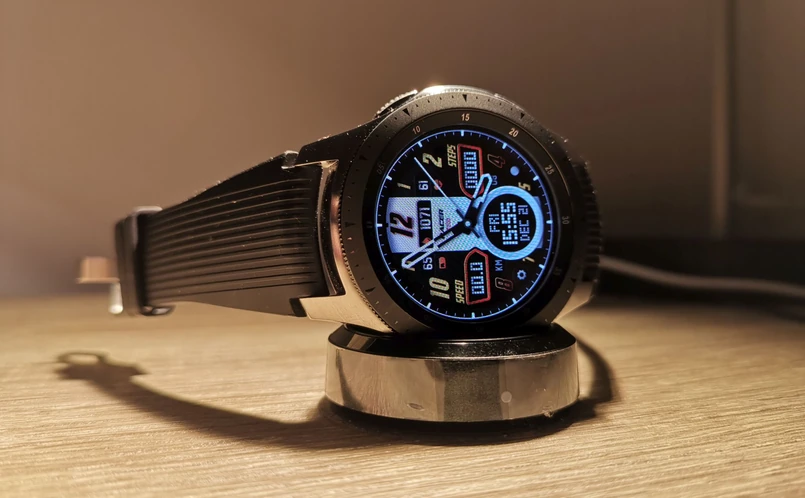 Galaxy Watch przypomina... każdy inny zegarek. Czyli ma klasyczną budowę, która jednak nawiązuje estetyką do czasomierzy sportowych – do opery pewnie wypadałoby założyć coś innego, ja jednak do opery nie chadzam, więc dla mnie to żaden problem. Za to do ubioru sportowego, koszuli, jeansów i marynarki Galaxy Watch sprawdzi się idealnie, zwłaszcza, że do wyboru jest gigantyczna ilość tarcz. Do tych, które mamy na dzień dobry w zegarku, możemy doinstalować całą masę innych – do znalezienia w aplikacji Galaxy Wearable (o której za chwilę).
