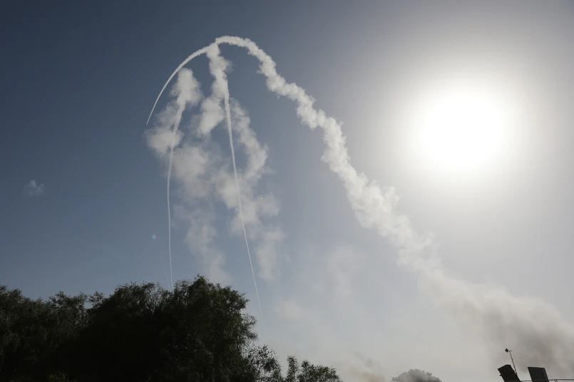 Sam widok działającego w warunkach bojowych systemu Żelaznej Kopuły wygląda jak z filmów SF - gdy dziesiątki antyrakiet Tamir przechwytuja wrogie pociski.