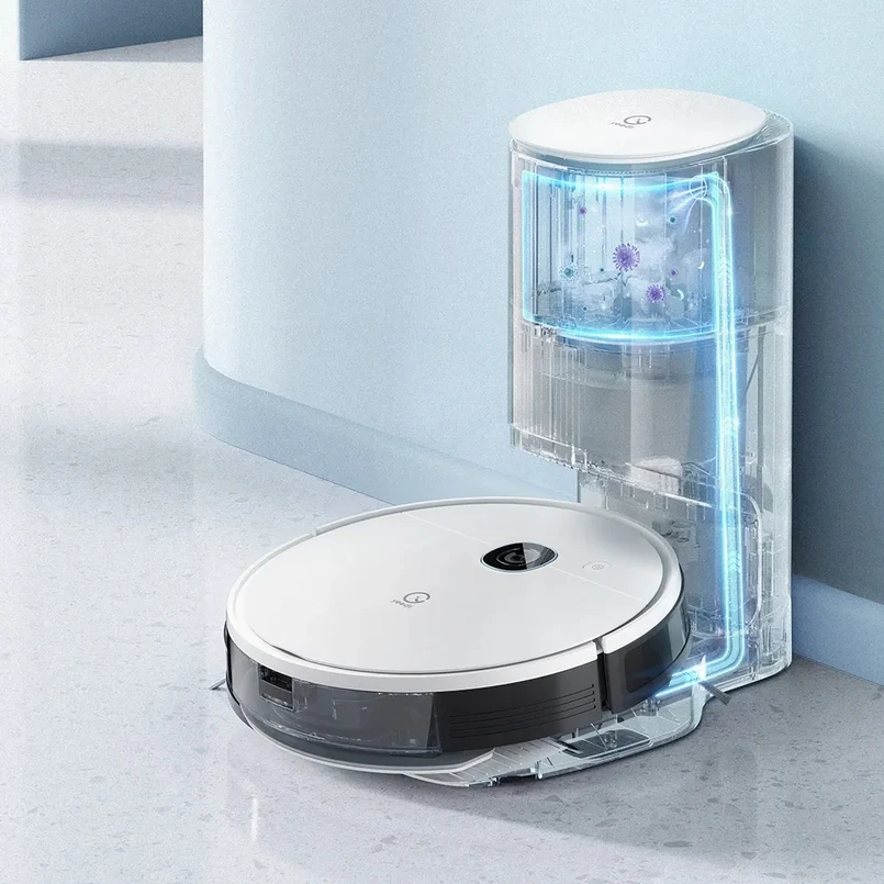 I oczywiście najważniejsza innowacja, to stacja samooprożniająca, która samoczynnie usuwa kurz do pojemnika jest w stanie zmagazynować kurz z 30 dni sprzątania. Dzięki wydajnym bateriom litowo-jonowym czas pracy tych robotów wynosi odpowiednio 110 min (yeedi vac hybrid) do 200 min (yeedi vac max) przy czym urządzenie samo wykrywa niski poziom baterii i w takim przypadku przerywa sprzątanie aby się doładować, po czym dalej kontynuuje sprzątanie.