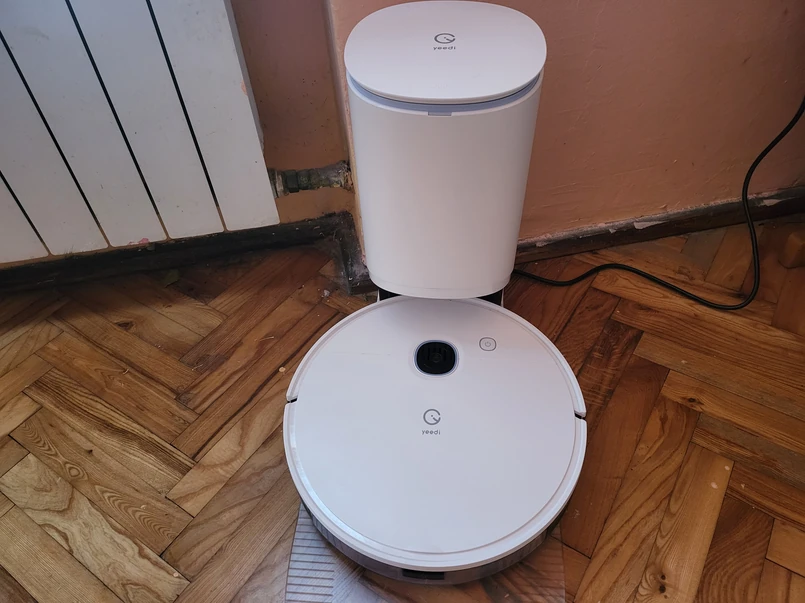 Jak Yeedi się sprawdza? Dzięki dużej mocy odkurzania, Vac Max radzi sobie z kłakami długowłosych kotów, kurzem i w zasadzie wszystkim, co leżyna podłodze i da się wciągnąć do zbiornika. Maszyna wjeżdża pod szafki i łóżka bez problemu, do tego nieźle sobie radzi z omijaniem przeszkód. To naprawdę udany model odkurzacza, który praktycznie potrzebuje naszej pomocy tylko w wyjątkowych sytuacjach. Jeśli chodzi o funkcję mopowania, to - faktycznie - Vac MAx omija dywany przy zainstalowanym zbiorniczku, jednak to raczej funkcja dodatkowa, po porządnym umyciu kafelków, np. do usunięcia drobnych plam czy zachowania czystości. Jak się coś nam na podłogę wyleje, albo mocno zabrudzi, to Yeedi sobie z tym tak sobie poradzi.