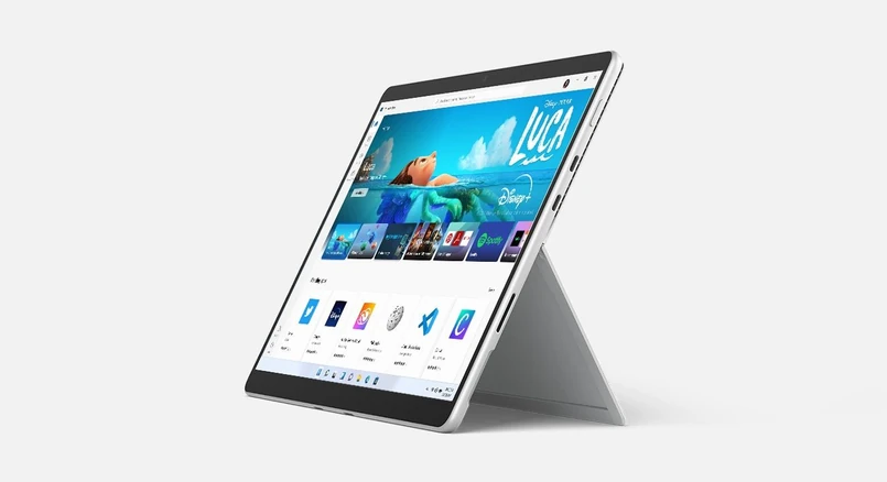 12,1 cala ekran o rozdzielczości 2880x1920 i odświeżaniu, pod maską i5 lub i7 oraz do 32 GB RAM i 1TB miejsca na dysku... a to wszystko zamknięte w ładnej, aluminiowej obudowie. Do tego specjalna, składana podpórka, dzięki której nie musimy szukać specjalnego futerału. Całość pracuje pod kontrolą WIndows 11 - oto Surface 8 Pro, czyli najnowsza hybryda Microsoftu. Niestety, wzorem MacBooka, dostajemy tylko dwa porty Thunderbolt/USB-C - jest też gniazdo ładowania, do podłączenia specjalnej wtyczki od ładowarki (na szczęście komputer da się też "nakarmić" kablem USB).