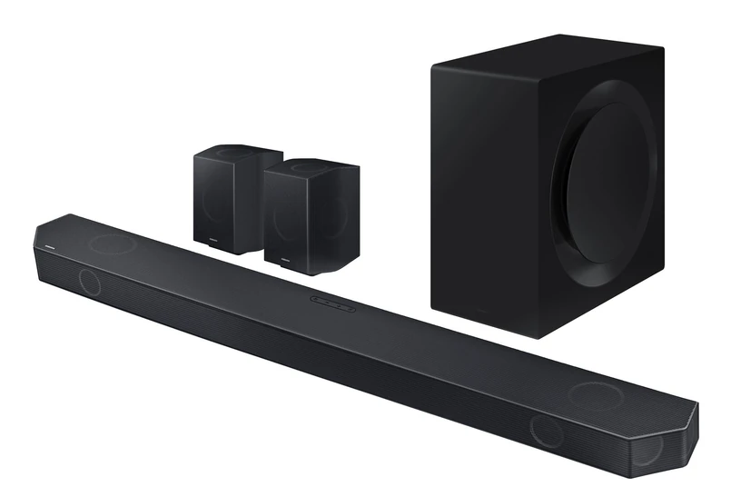 Soundbar, w przeciwieństwie do konkurencji, nie tworzy wirtualnego wielokanałowego dźwięku. Samsung postawił bowiem na fizyczne głośnik w systemie 11.1.4 z głośnikami zarówno na tylnych satelitkach, jak i na belce, ustawionymi w górę i na boki, by dźwięk mógł odbijać się od sufitu i ścian, tworząc efekty Dolby Atmos tak dobre, jak w kinie domowym.