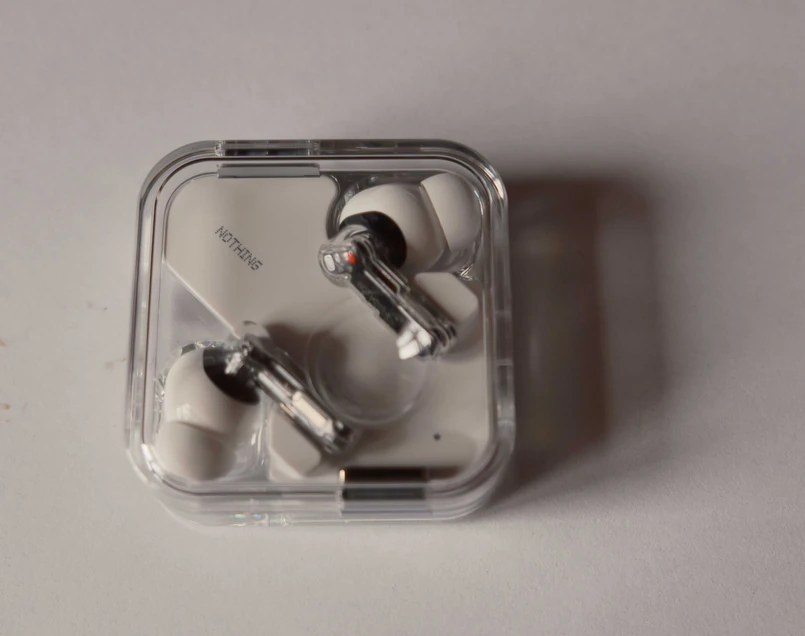 Design Nothing Ear utrzymano w stylistyce marki. Dostajemy kwardratowe, przezroczyste plastikowe etui, z wbudowanym systemem ładowania bezprzewodowego. Ma ono specjalne wklęsłe miejsce na opuszkę palca, by łatwo je wyciągnąć z kieszeni, jest też odporne na deszcz i kurz.