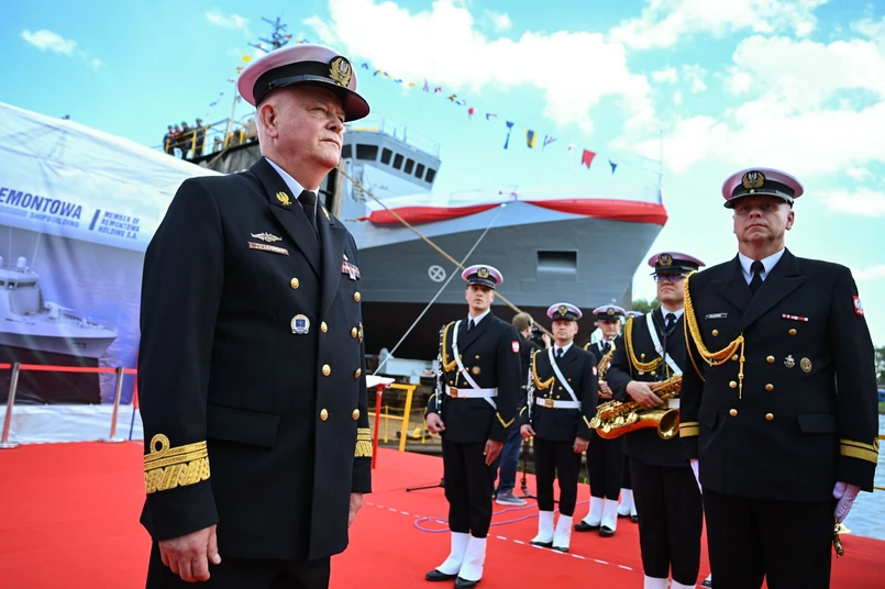 Szef Biura Bezpieczeństwa Narodowego Jacek Siewiera podziękował w imieniu prezydenta za budowę okrętu i wodowanie pracownikom Remontowa Shipbuilding S.A. Siewiera podkreślił, że stara się być na każdej takiej uroczystości, bo one pokazują trend odbudowy marynarki wojennej. "Jej wagi i pozycji w systemie bezpieczeństwa narodowego państwa. Kolejne uroczystości kolejnych okrętów, w których Remontowa Shipbuilding bierze tak aktywny udział w rozbudowie tych zdolności, tworzenie potencjału marynarki wojennej przez kolejne projekty" – mówił minister Siewiera.