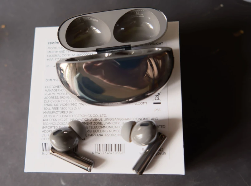 Buds Air 6 Pro są bardzo błyszczące - zarówno słuchawki, jak i etui. Z jednej strony to oznacza, że pudełeczko jest widoczne z daleka, z drugiej zaś strony to maniacy czystości będą mało zadowoleni. Etui, jak i słuchawki, ze względu na błyszczący plastik, brudzą się bowiem od samego patrzenia.
